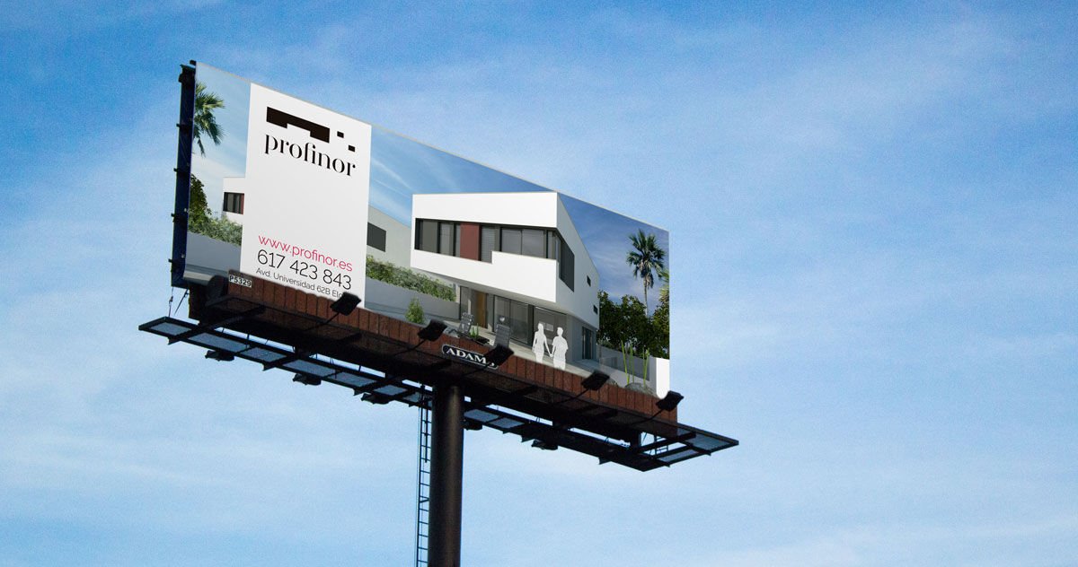 Profinor son viviendas de lujo y diseño vanguardistas ubicadas en Elche. Para dar a conocer este proyecto de nueva construcción creamos un logotipo que identificara las viviendas, una web con toda la información y detalles sobre sus calidades y una valla publicitaria pie de obra.